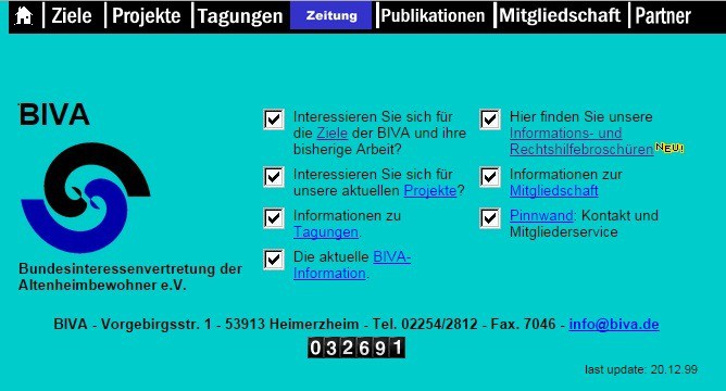 Schon 1997 wurde der Internetauftritt der BIVA konzipiert. Fortan bestand Gelegenheit, schnell und unbürokratisch Informationen des Fachverbandes von einer interessierten Öffentlichkeit abzurufen. Auch der Zugriff auf hilfreiche Informationen und Broschüren der BIVA war von nun an einfacher.